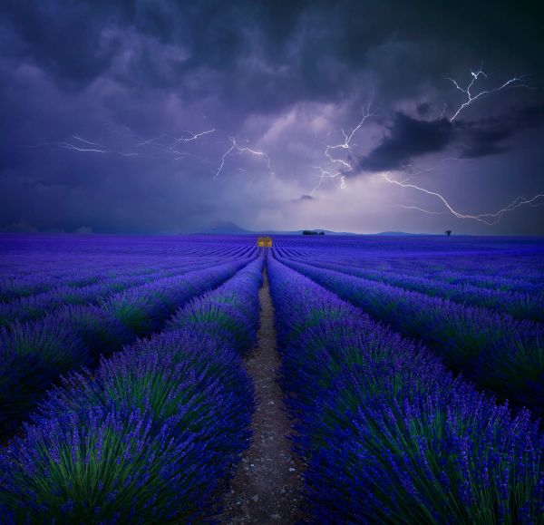 Wetter im Lavendelfield sur Papier peint photo. Orage au-dessus des champs de lavande pour une image spectaculaire.