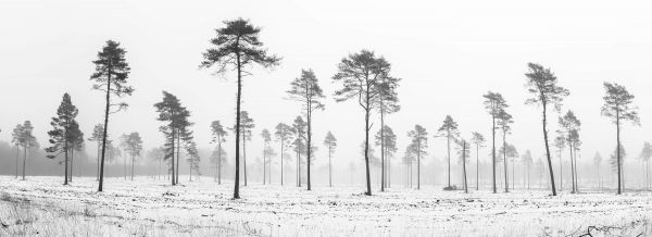 Une zone enneigée dans la nature avec de grands arbres. Appliquez ce papier peint dans votre chambre ou votre salon.